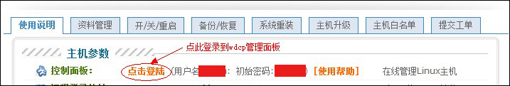[原創]VPS/云主機用WDCP建站流程及卸載wd以下內容僅適用于我司的linux的VPS和云主機。 推薦按以下流程使用WDCP面版進行管理,若您需要用SSH(http://www.827yx.com/faq/448.html )登錄服務器,請注意登錄端口是22000,不是默認的22端口,初始的用戶名和密碼詳見控制面板。 Mysql的root密碼 跟控制面板顯示的初始密碼相同,一般不建議單獨修改Mysql的root密碼。 首先請將您的域名解析到您的IP地址,并且在我司提交白名單(白名單每小時自動刷新一次,刷新后生效)。待白名單生效后用您的域名加8080端口來登陸WDCP管理系統。如:http://www.abc.com:8080。也可以從我司的獨立IP管理面板來直接登錄,如圖: 共享IP的登錄位置如圖: 登錄時用戶名填寫默認的管理員用戶名root,密碼為“資料管理”中的初始密碼。如圖: 登陸后,左邊是管理欄目,右邊就是顯示的系統狀態,可以很清楚的看到當前服務器的系統各項信息,如圖: 以下是建站流程,一共分為六個步驟,圖中用阿拉伯數字標注了,如圖: 1、填寫您要訪問的頂級域名。 2、綁定除頂級域名以外的其他域名。 3、填寫站點目錄,建議和后面要填寫的FTP賬號保持一致。 網站程序請上傳至站點目錄下的piblic_html文件夾中,若需使用錯誤定向頁,請勾選,如404錯誤的定向頁。若需開啟訪問日志和錯誤日志,請勾選,開啟后將占用服務器磁盤空間,需要定期清理。 4、偽靜態設置,請保持默認“無”,或者選擇對應的偽靜態配置,若自己不清楚是哪個版本,請選擇“無”。 5、填寫FTP賬號和密碼,建議跟站點目錄名稱一致,方便管理 6、填寫mysql數據庫名和密碼,建議數據庫名、數據庫用戶名和站點目錄名稱一致,方便管理。 至此,新建網站的流程就完成了。注意:FTP上傳文件時要把網頁文件傳到:public_html 這個目錄里面去。 如果你想要純凈版的linux,然后自己安裝php,mysql,apache等軟件, 卸載wdcp控制面板的方式如下:用 ssh遠程登錄服務器, 特別說明:mysql的root用戶密碼默認為“獨立IP主機管理”中服務器登錄的初始密碼,若要修改,請直接在wdcp管理系統 “mysql管理”——“修改root用戶密碼”中修改,切勿登錄phpmyadmin直接修改root密碼。 特別提醒:初學者建議不要修改“服務設置”、“系統管理”、“安全管理”中的項目,以免造成系統或網站故障。 WDCP系統說明文檔:http://downinfo.myhostadmin.net/wdcp.doc 點擊下載