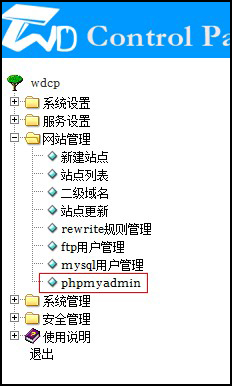 [原創]linux的VPS/云主機怎樣導入和導出mysql數據庫(WDCP系統適用)輸入http://域名:8080 登陸到wdcp管理系統,點擊phpmyadmin,如圖: