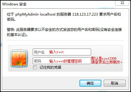 在彈出的登陸窗口中輸入數據庫名和密碼,超管賬戶是root,密碼是root3306。 為了您數據庫的安全,首次登陸后請變更root密碼并牢記!!! 如圖: