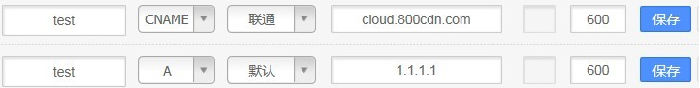 智能多線彈性云增加獨立的IP地址,如何實現多線功能默認我司增加的獨立IP地址只有單獨電信線路,需通過第三方的解析實現多線功能. 一、比如域名test.com,首先在dnspod申請這個域名dns解析,然后吧此域名dns改成dnspod的; 一共增加兩條解析記錄: 注意:此二級域名等同于我司贈送二級域名,以后其他域名直接解析到此二級域名“test.test.com”即可。其他解析到此二級域名的域名,和二級域名本身都需提交白名單才能訪問。