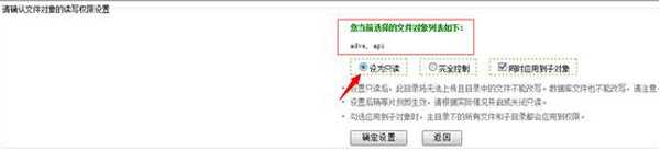 確認后點擊【確定設置】設置后可以通過文件管理中的權限功能,查看設置是否成功
