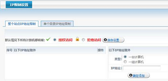 默認【授權訪問】所有計算機都能訪問網站,在下面添加的IP或者 IP段會被禁止訪問