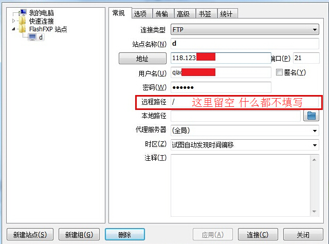 2.原因是在設置ftp信息時,遠程路徑這一項填寫了/ ,去掉保持為空即可