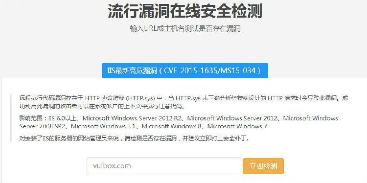 漏洞在線檢測地址:https://www.vulbox.com/lab/