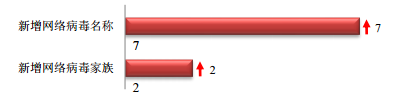 由圖3獲悉,本周新增網絡病毒名稱7個,環比上周增加7個;新增網絡病毒家族2個,環比增加2個。