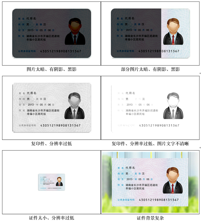 3. 身份證圖片中文字、證件號碼盡量清晰可辨,建議不要涂改或在名字和證件號文字上添加水印。