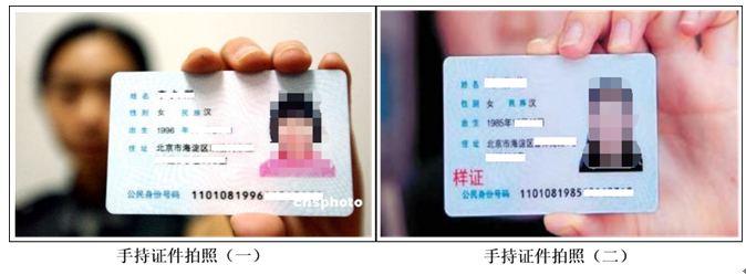2. 建議盡量使身份證在留有四個邊緣的情況下少留背景,背景建議為均勻白色,避免其他裝飾(人、物體等)。建議不要手持證件拍攝。