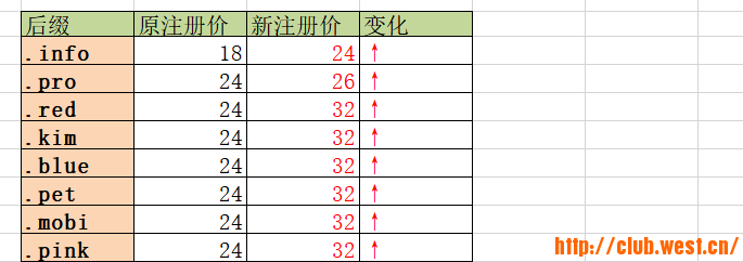 1. 為避免您不必要的額外支出,對于漲價的域名,建議您在以上漲價時間之前盡快完成注冊、續費、轉入。